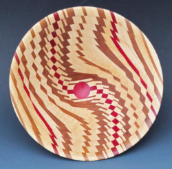 Sycamore with black & red veneer wavy inserts .150 mm diameter. Inspired by John Beaver. Ref 12.11